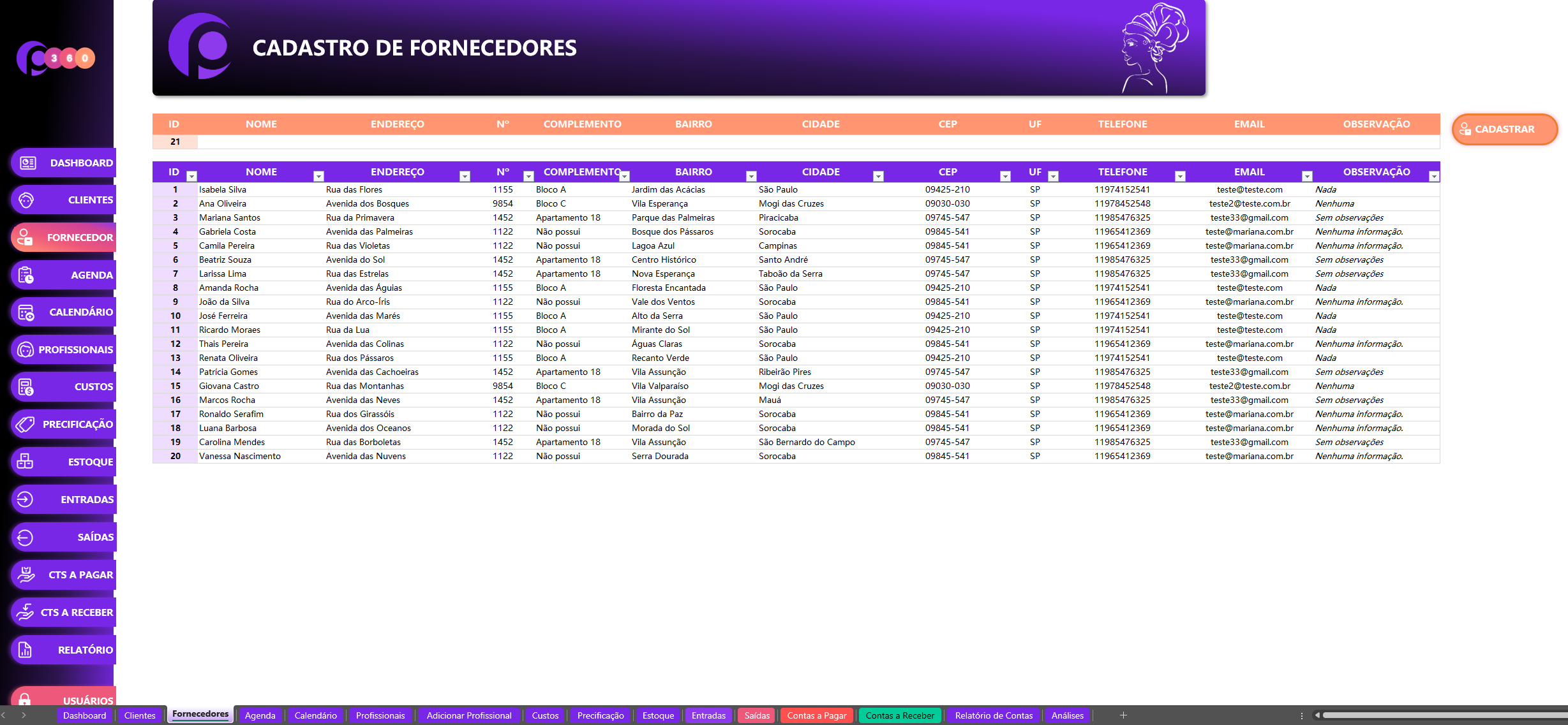 Organização e controle das informações relacionadas aos fornecedores do seu negócio. Essa gestão é essencial para manter um relacionamento eficiente com os parceiros que fornecem produtos ou serviços para você.