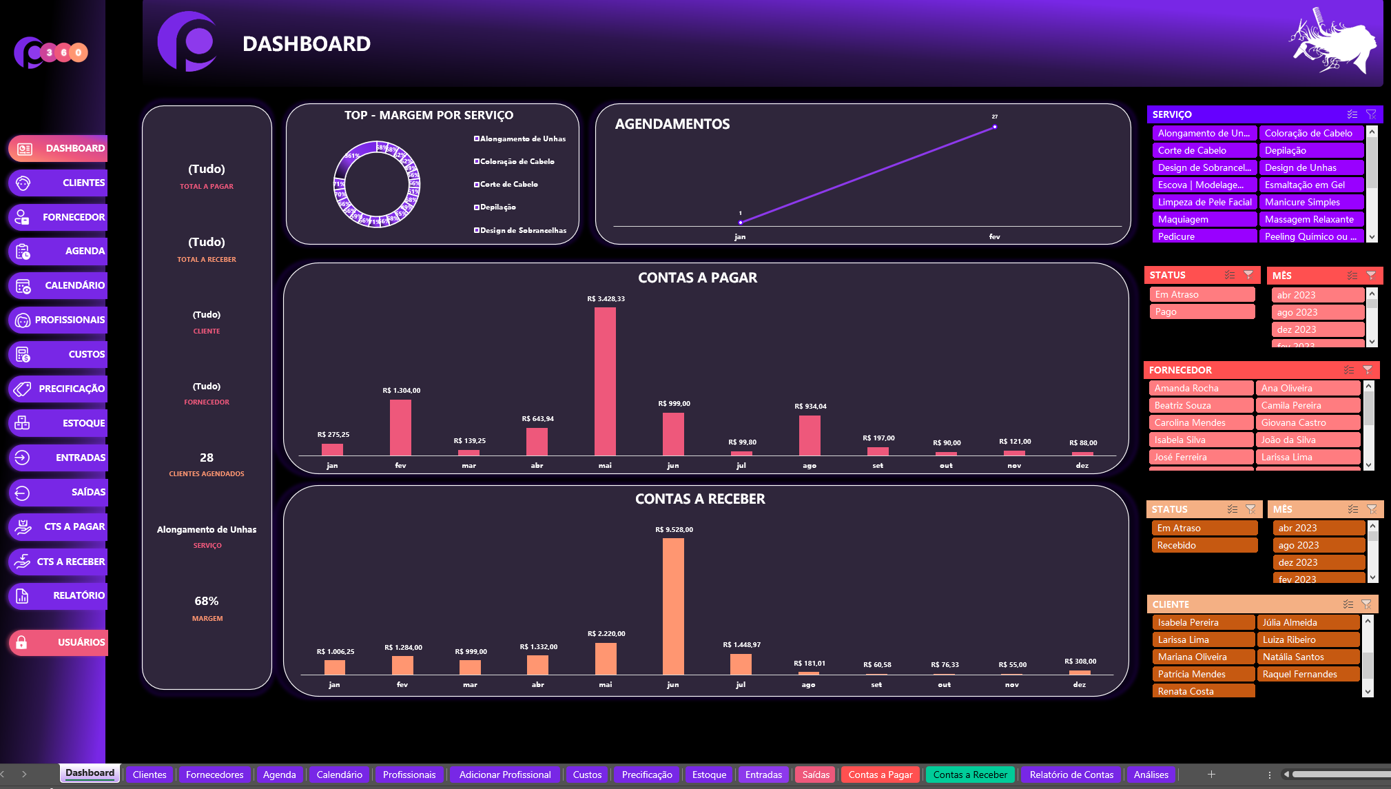 estética e salão de beleza, oferecendo uma visão detalhada e precisa das operações